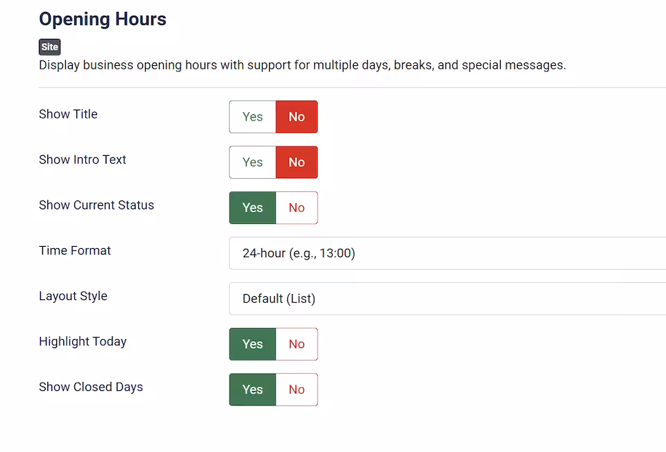 • Wyświetlanie godzin otwarcia dla każdego dnia tygodnia